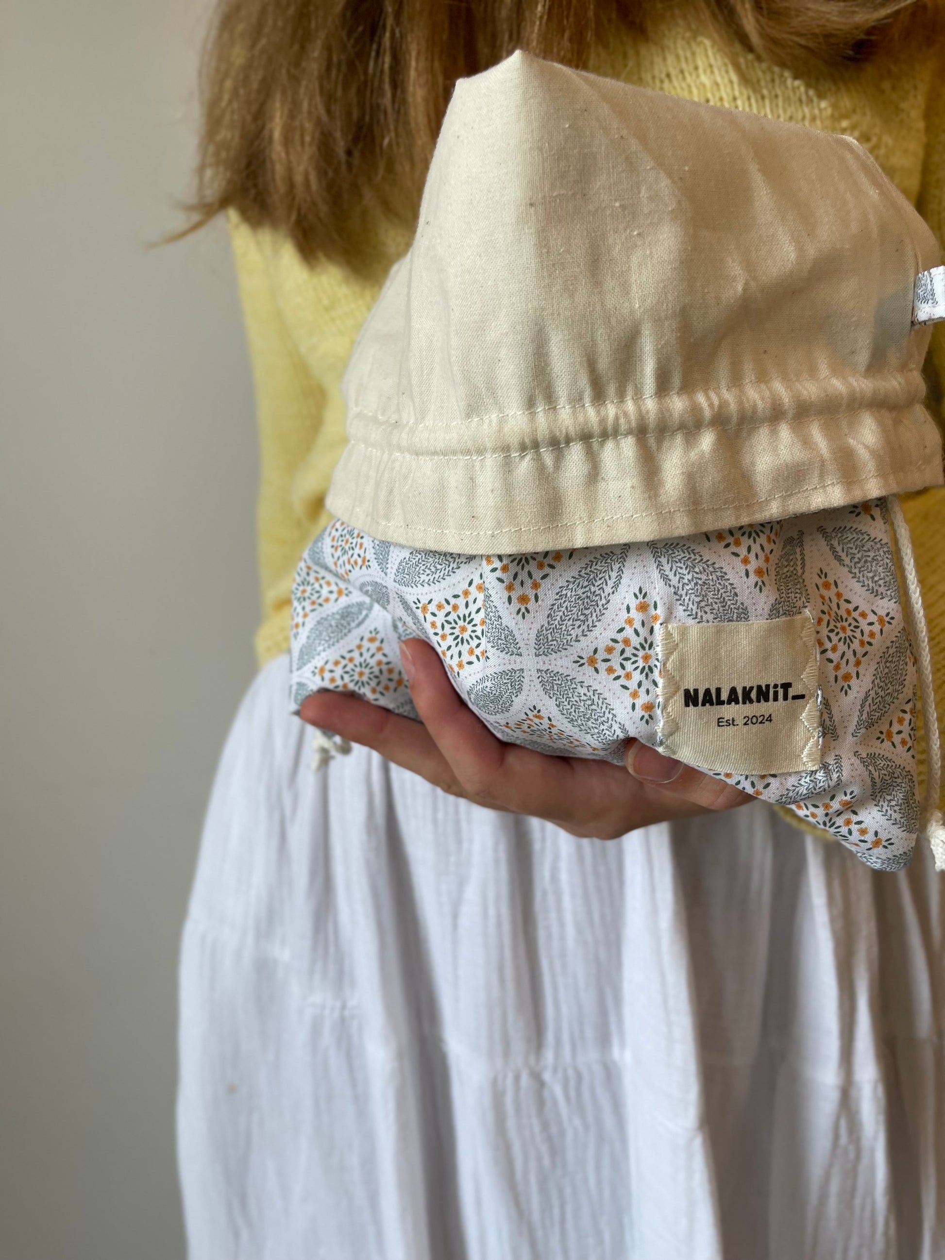 The drawstring bags are hand-sewn and perfect for safely storing and conveniently transporting smaller projects. They can be closed with drawstrings, ensuring nothing gets lost and everything stays securely in place. The double layer of fabric gives the bag a particularly high-quality feel, yet remains lightweight and flexible. This means it can be easily stored inside other bags without taking up unnecessary space.