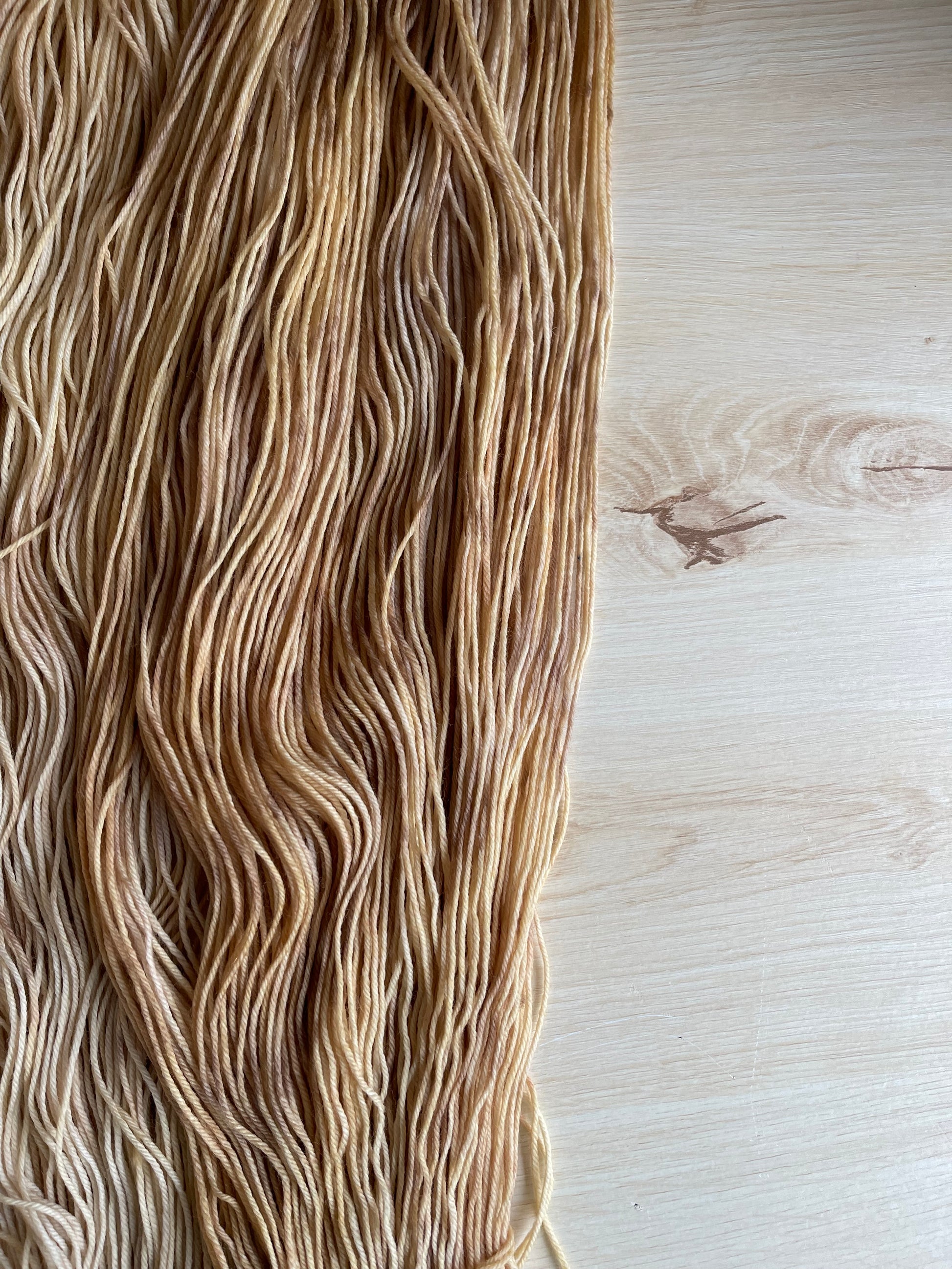 Alle Stränge wurden gründlich gewaschen, es kann jedoch sein, dass bei dunkleren Farben noch etwas Farbe verbleibt. Wasche deine handgefärbten Projekte daher beim ersten Mal separat in kaltem Wasser mit Hand.