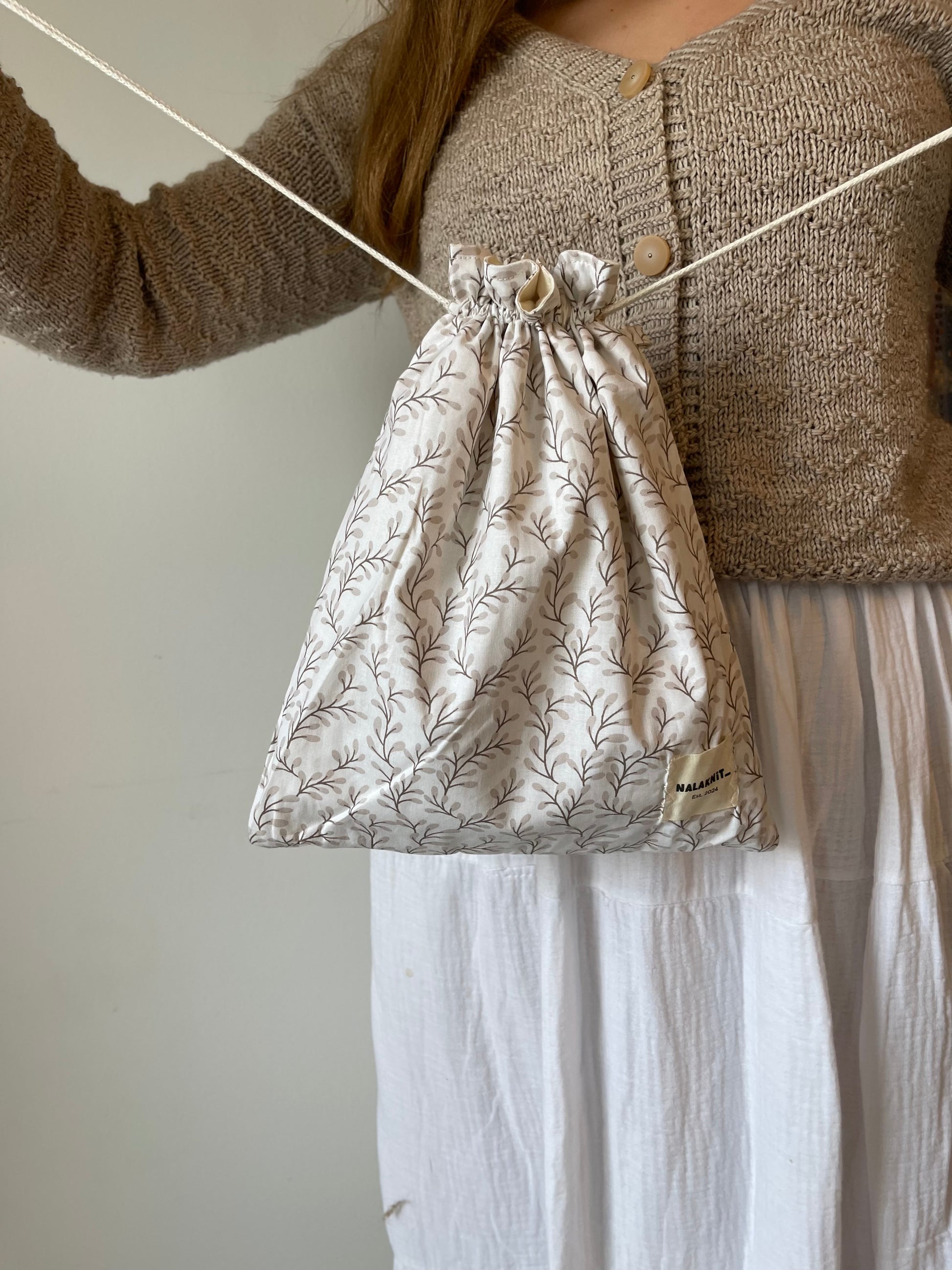 Die Zugbandbeutel sind selbstgenäht und eignen sich perfekt, um kleinere Projekte sicher zu verstauen und bequem zu transportieren. Sie können mit Kordeln zugezogen werden, wodurch nichts verloren geht und alles sicher an seinem Platz bleibt. Durch die doppelte Stofflage wirkt der Beutel besonders hochwertig, bleibt aber dennoch leicht und flexibel. So kann er problemlos in anderen Taschen verstaut werden, ohne unnötig viel Platz einzunehmen.