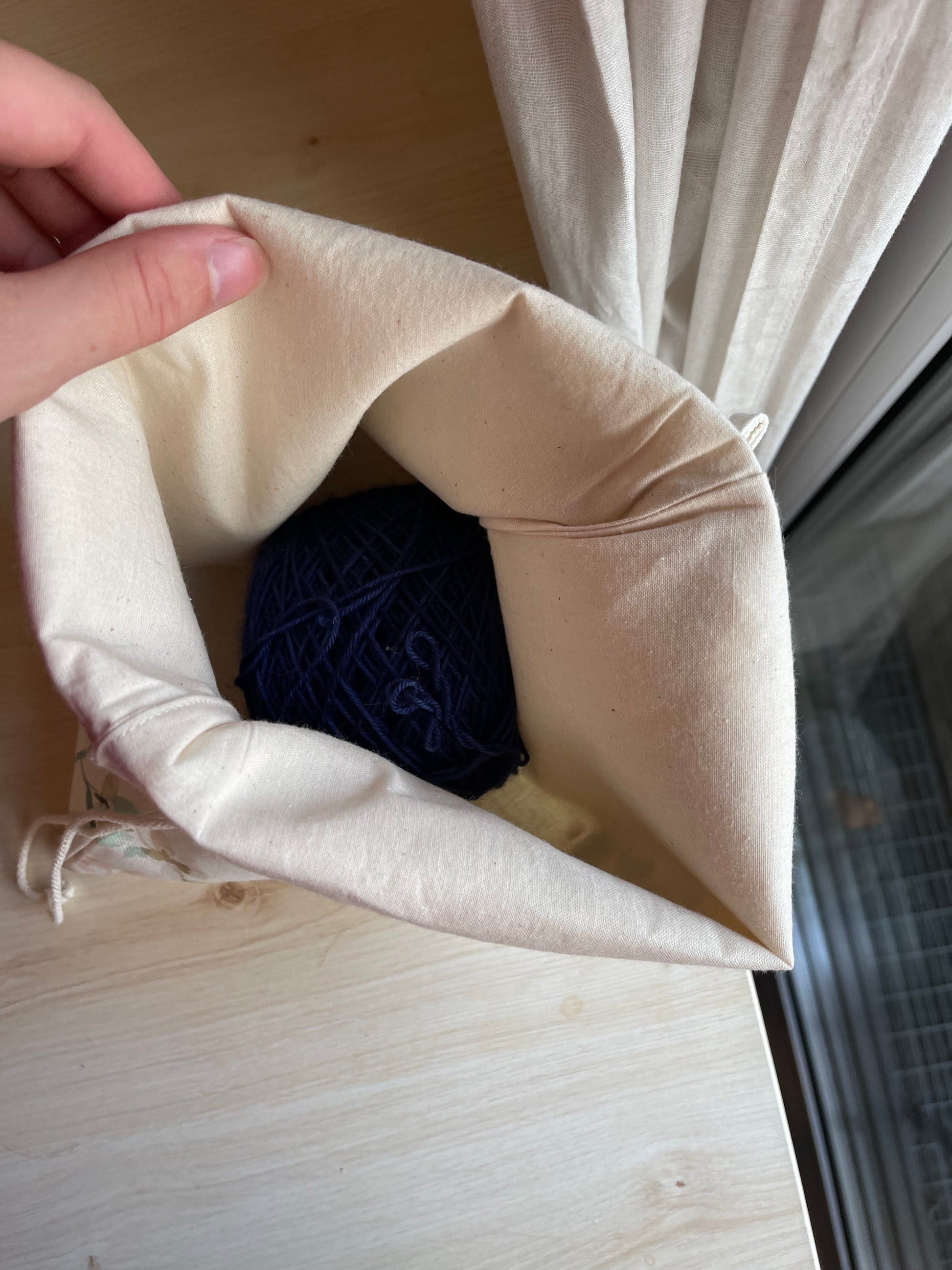Die Zugbandbeutel sind selbstgenäht und eignen sich perfekt, um kleinere Projekte sicher zu verstauen und bequem zu transportieren. Sie können mit Kordeln zugezogen werden, wodurch nichts verloren geht und alles sicher an seinem Platz bleibt. Durch die doppelte Stofflage wirkt der Beutel besonders hochwertig, bleibt aber dennoch leicht und flexibel. So kann er problemlos in anderen Taschen verstaut werden, ohne unnötig viel Platz einzunehmen.