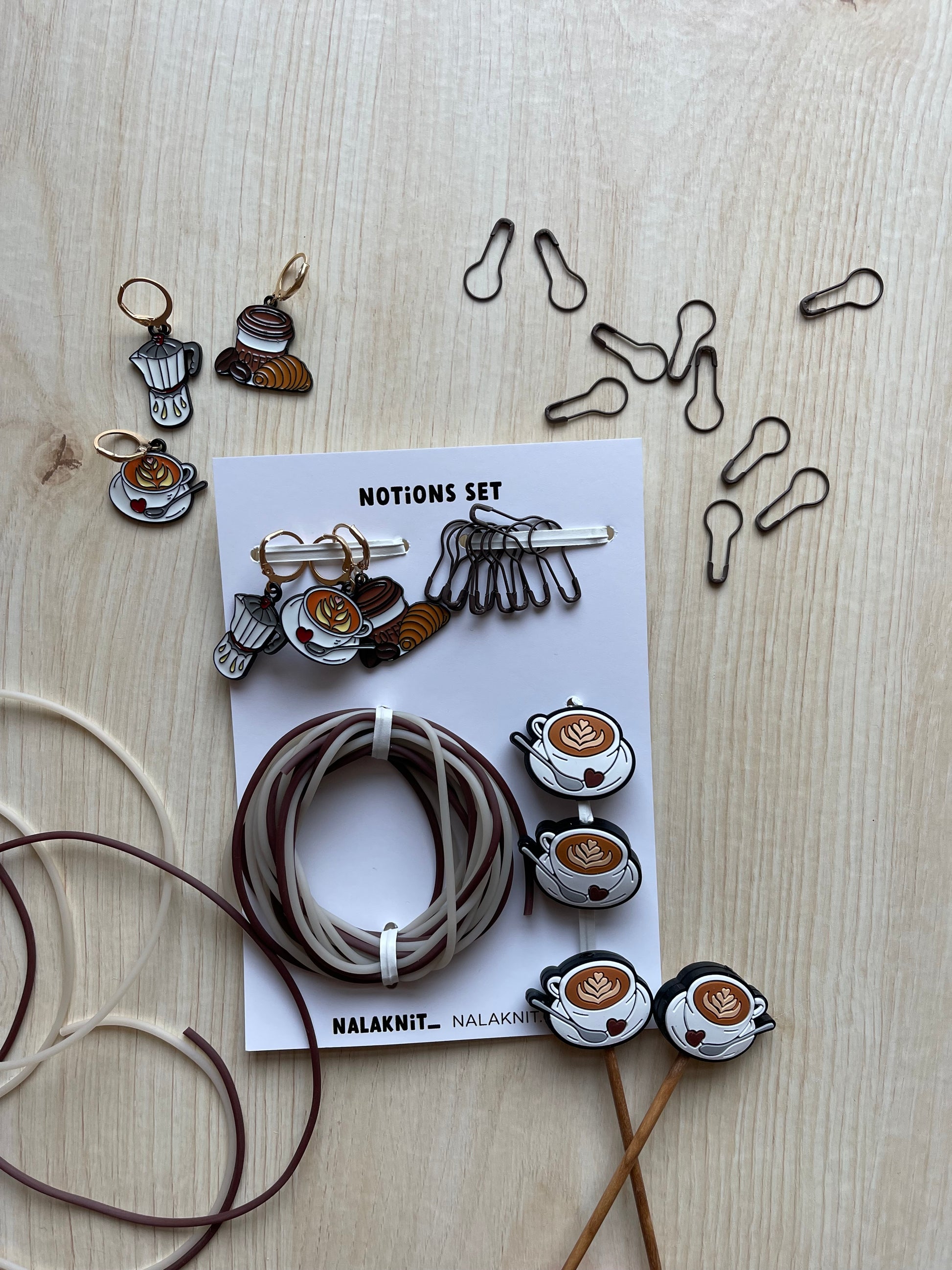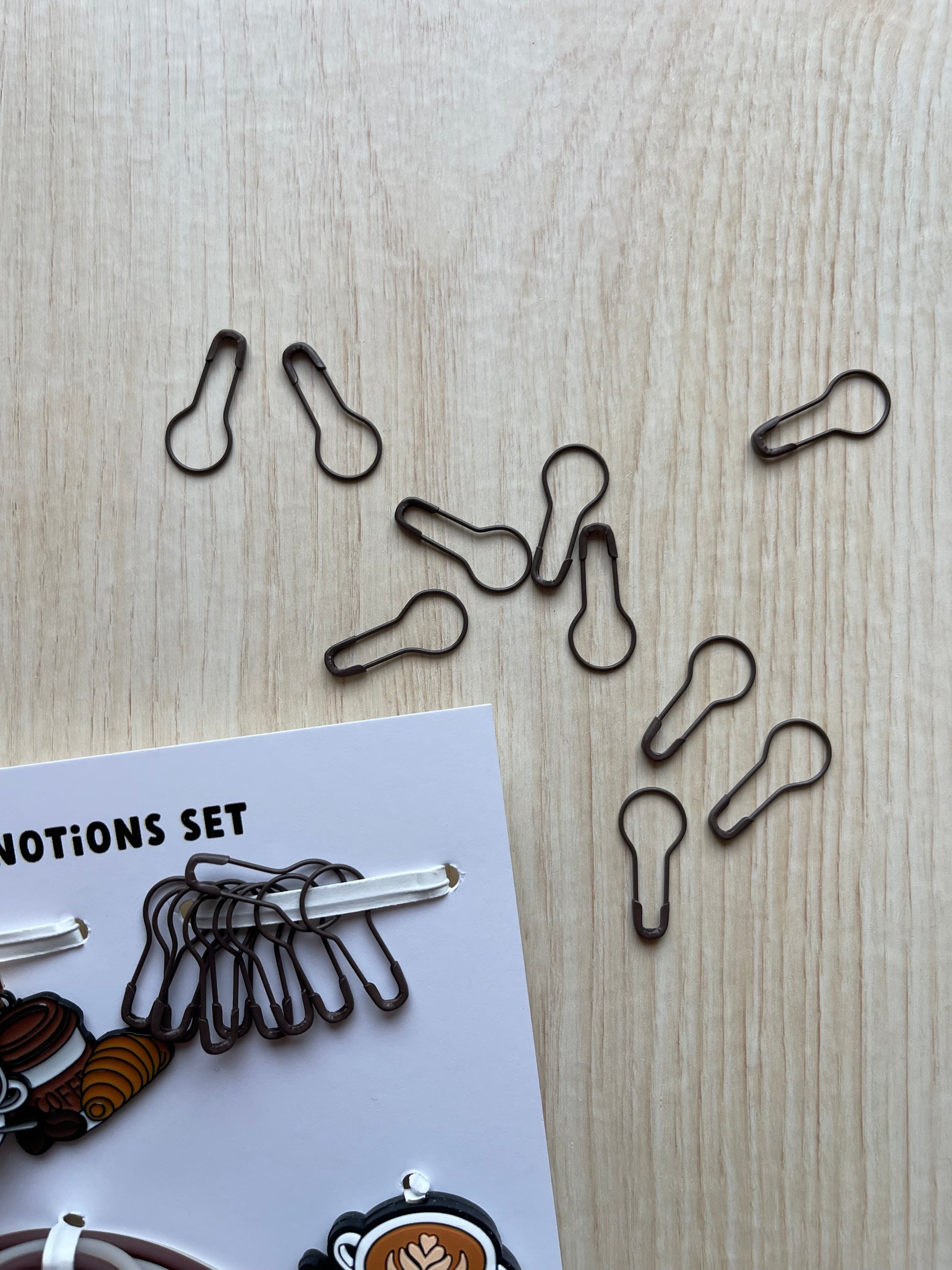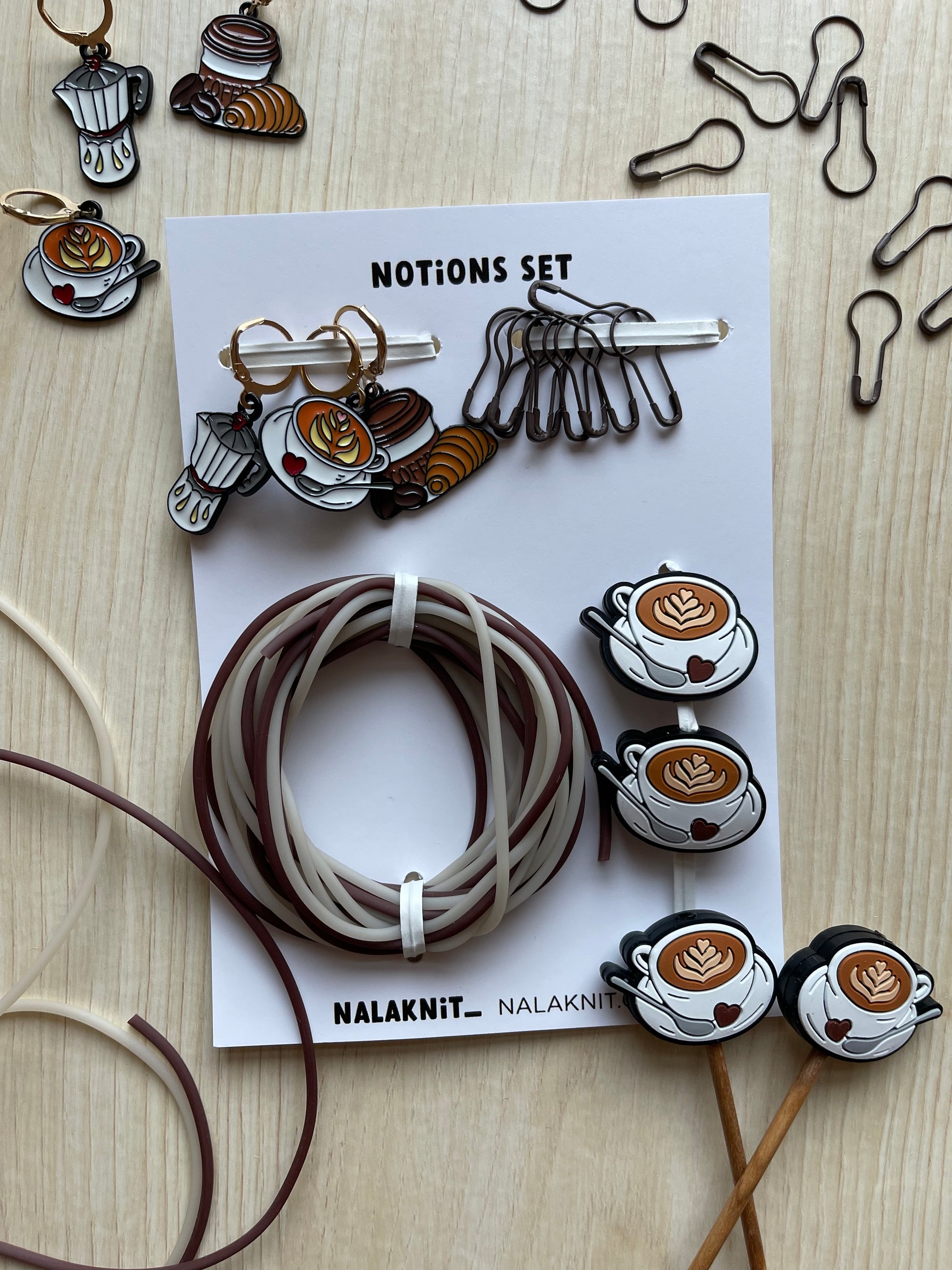 INHALT SET: Maschenhalter (2 x 2m), Nadelstopper (2 stk.), Maschenmarkierer (3 stk.), Metall-Maschenmarkierer (10 stk.),