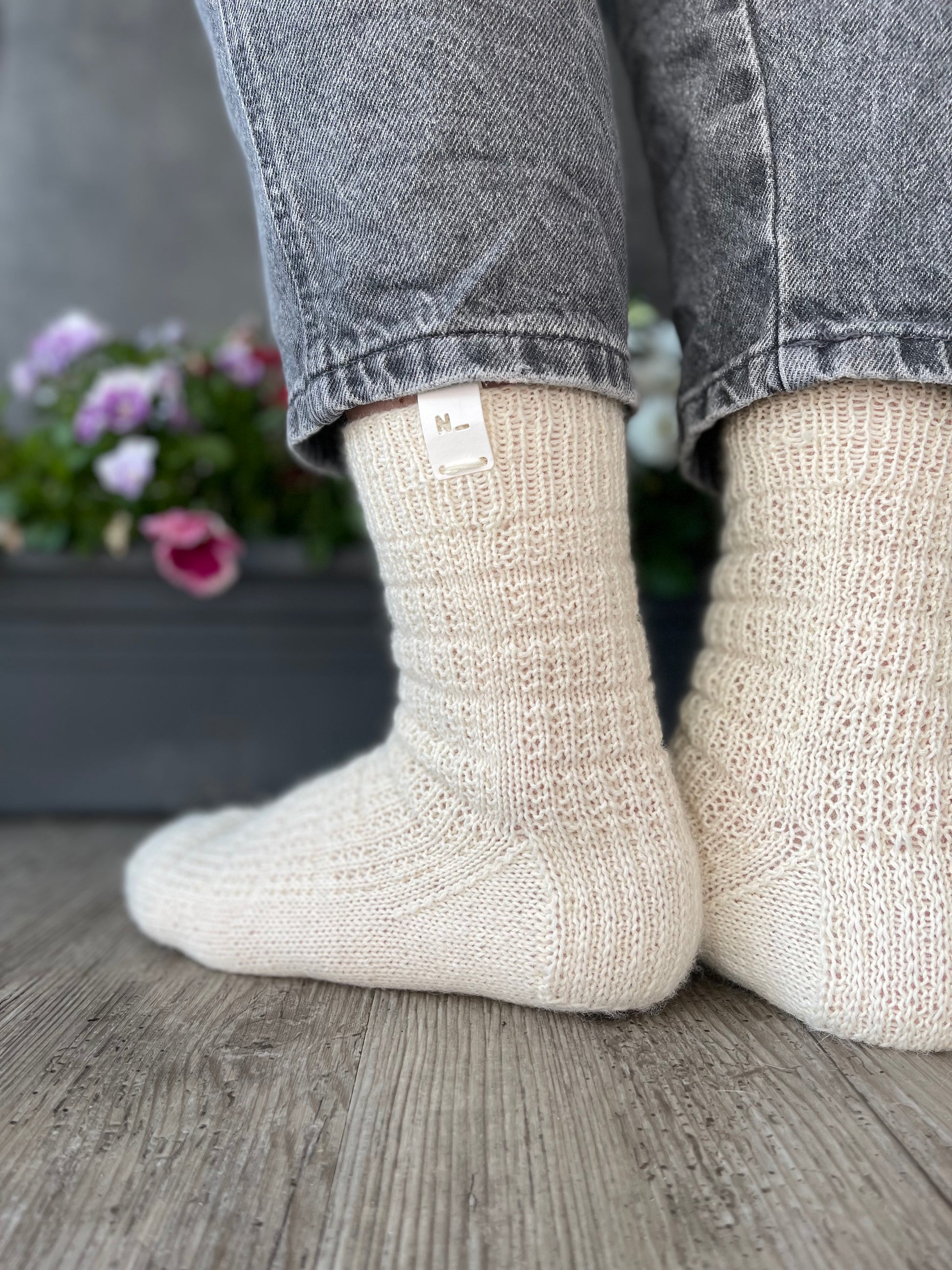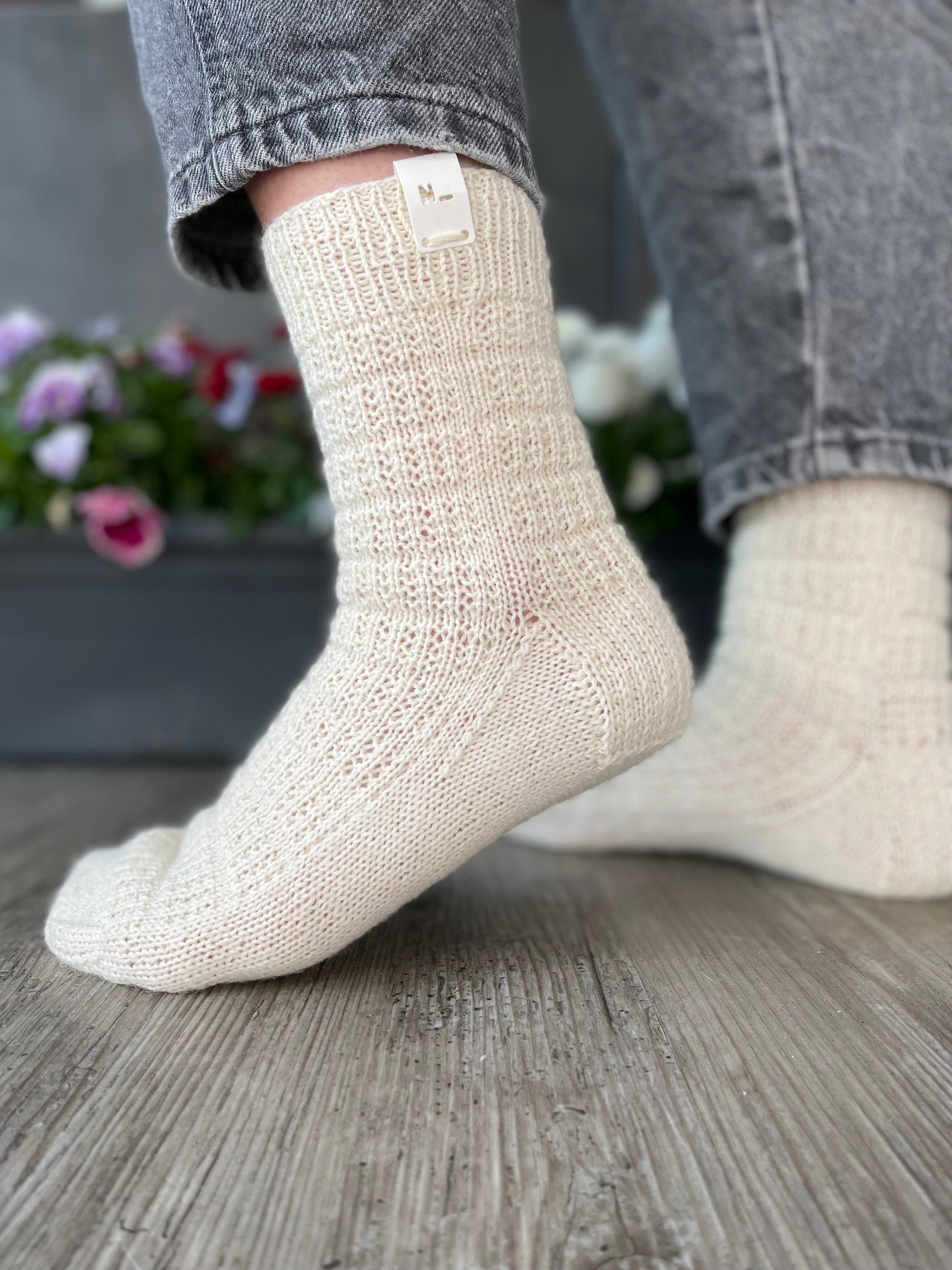 Die Nalasocken werden von oben nach unten gestrickt. Zunächst wird das Bündchen gearbeitet, gefolgt vom Schaft, der in Runden mit einem Muster gestrickt wird. Anschließend wird die verstärkte Fersenwand gestrickt, bevor das Fersenkäppchen geformt wird. Daraufhin folgt der Zwickel. Der Fuß wird ebenfalls im Muster gestrickt, bis schließlich die Spitze mit Abnahmen geformt wird. Die Socke wird dann mit dem Maschenstich geschlossen.