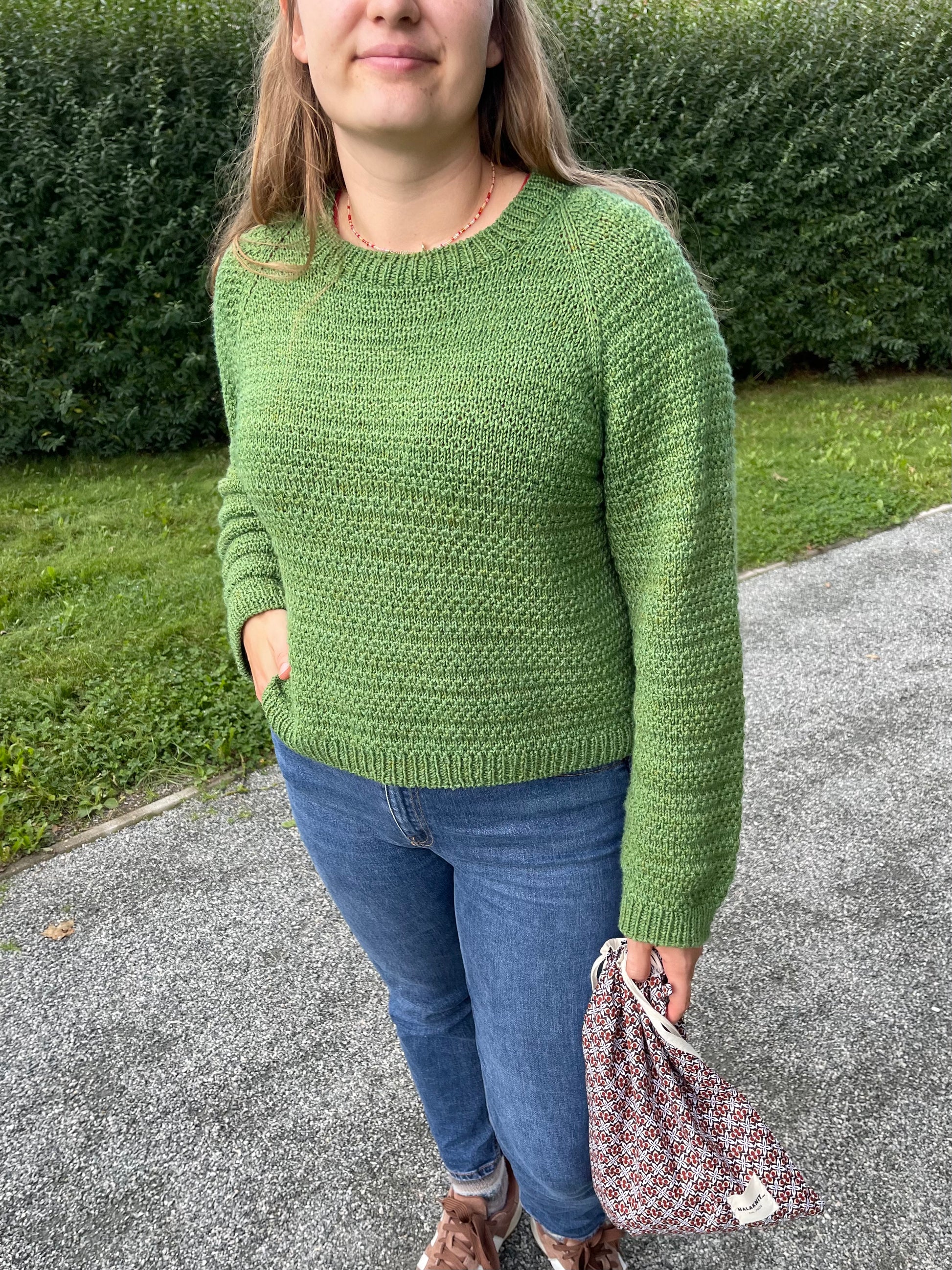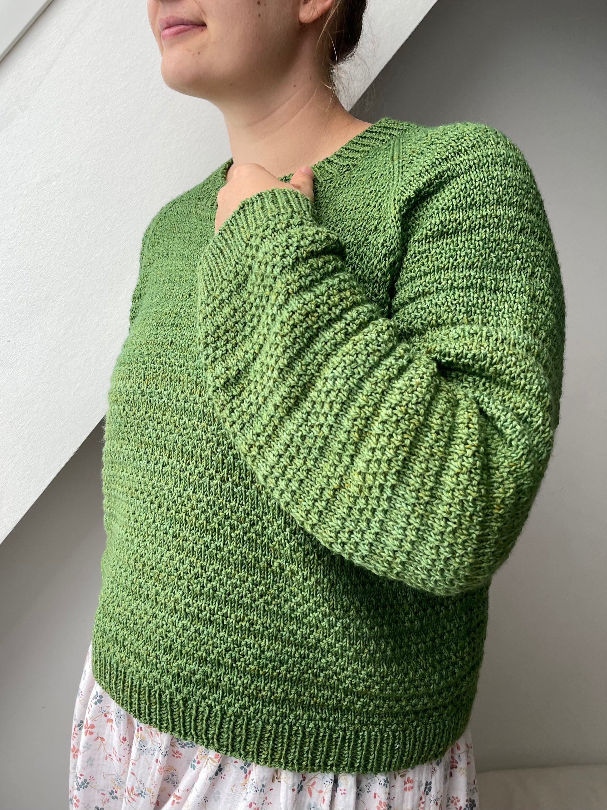 MATERIALIEN: Maschenmarkierer, VernähnadelKONSTRUKTION: Der Novasweater wird von oben nach unten gestrickt. Zunächst wird in Reihen gestrickt, um den Halsausschnitt zu formen. Anschließend wird zur Runde geschlossen und Raglan-Zunahmen gestrickt. Nach Fertigstellung der Passe werden Körper und Ärmel getrennt. Die Ärmel werden mit Abnahmen gestrickt, der Körper separat in Runden.