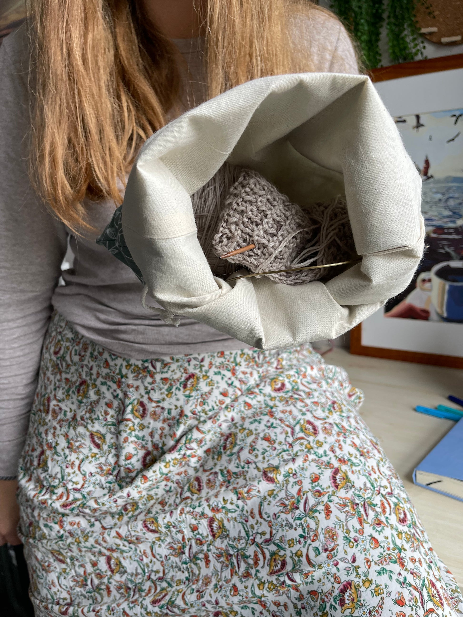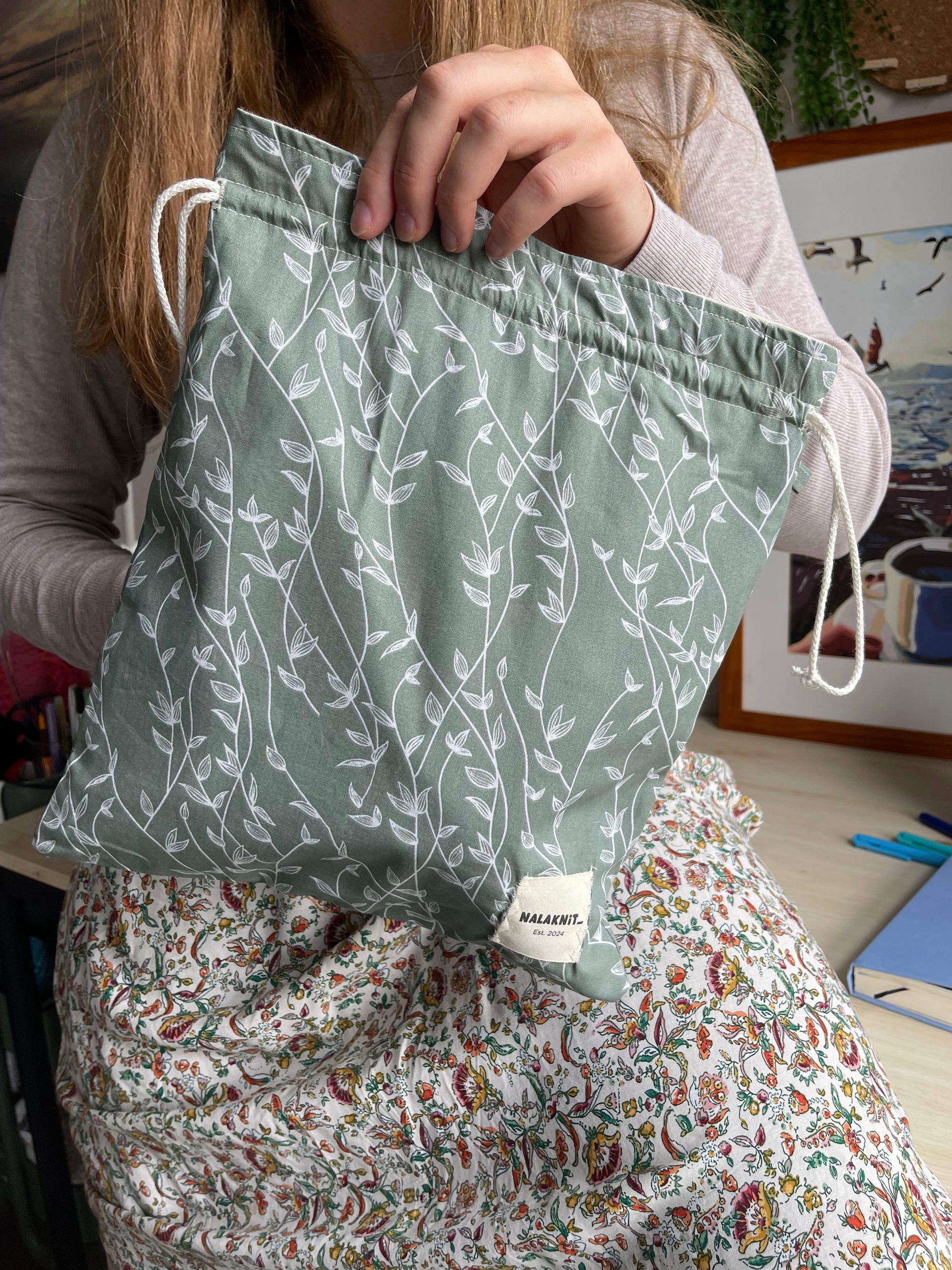 Die Zugbandbeutel sind selbstgenäht und eignen sich perfekt, um kleinere Projekte sicher zu verstauen und bequem zu transportieren. Sie können mit Kordeln zugezogen werden, wodurch nichts verloren geht und alles sicher an seinem Platz bleibt. Durch die doppelte Stofflage wirkt der Beutel besonders hochwertig, bleibt aber dennoch leicht und flexibel. So kann er problemlos in anderen Taschen verstaut werden, ohne unnötig viel Platz einzunehmen.