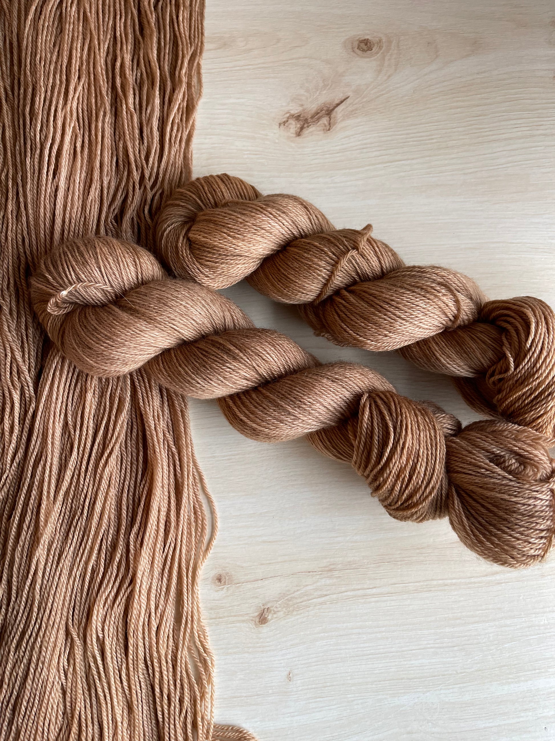 WICHTIGE HINWEISE: Achte darauf, genügend Wolle für dein Projekt auf einmal zu kaufen. Trotz meiner Bemühungen um eine gleichmäßige Färbung kann das Handfärben zu leichten Abweichungen in Farbe und Tiefe führen, auch innerhalb eines Batches.