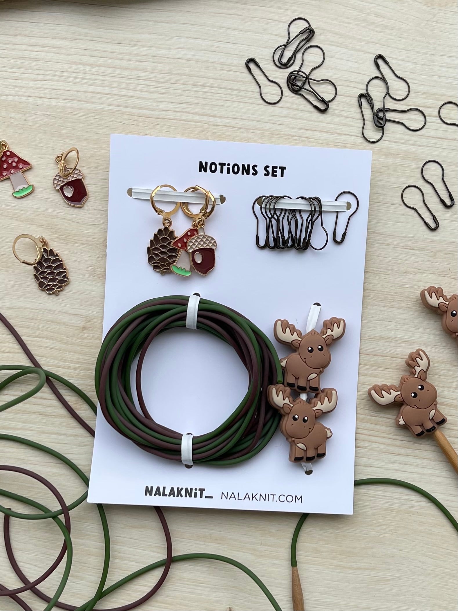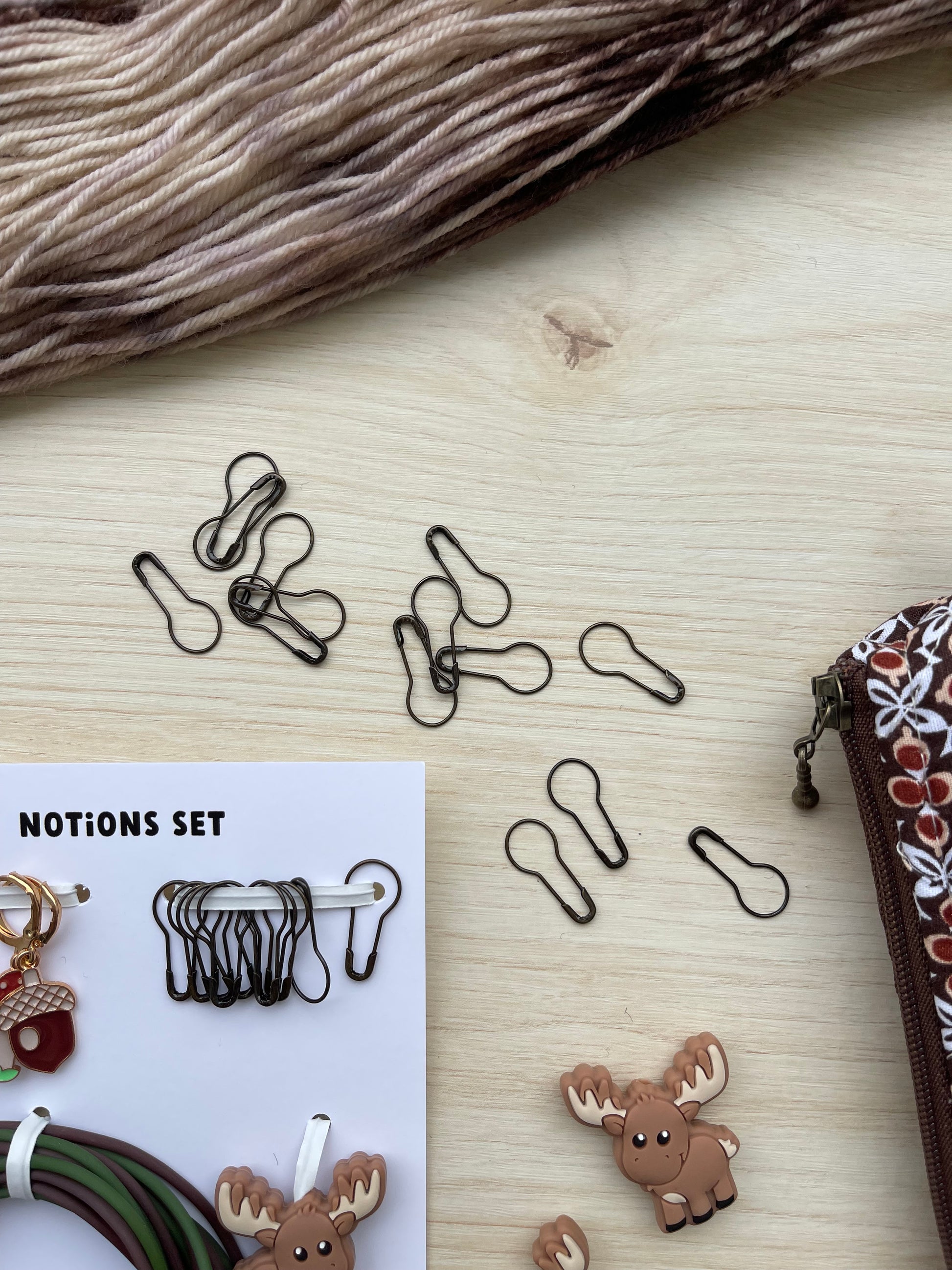 INHALT SET: Maschenhalter (2 x 2m), Nadelstopper (2 stk.), Maschenmarkierer (3 stk.), Metall-Maschenmarkierer (10 stk.),